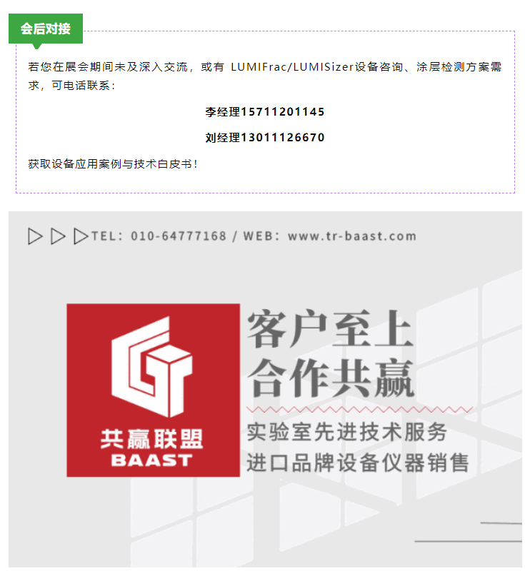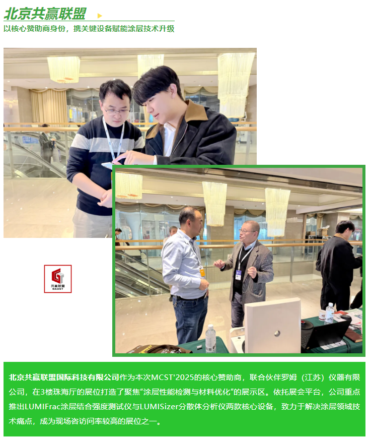 本次 MCST'2025的参与,不仅让北京共赢联盟的 LUMIFrac 与 LUMISizer设备获得行业深度认可,更通过与高校、企业的面对面交流,精准捕捉到涂层领域的新需求——如“低温涂层结合强度检测”“生物医用涂层安全性评估”等,为后续设备技术迭代与服务优化提供方向。