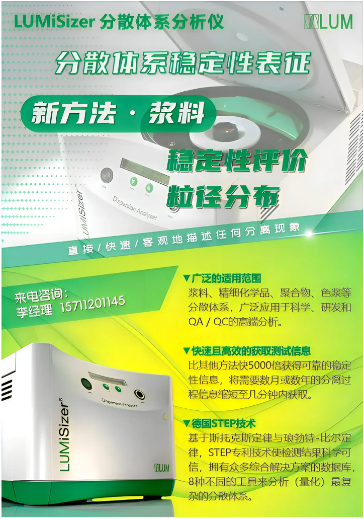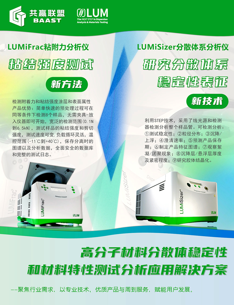 LUMISizer 分散体分析仪:呼应新能源涂层、生物医用涂层专题中 “材料分散稳定性”的核心需求,设备通过静态多重光散射技术,实时监测涂层浆料中颗粒沉降、团聚行为,为涂层配方优化(如纳米涂层分散性调控)、生产过程质量控制提供数据支撑。多家新能源电池涂层企业技术负责人现场咨询,希望通过设备解决“涂层均匀性差导致的性能波动”问题。