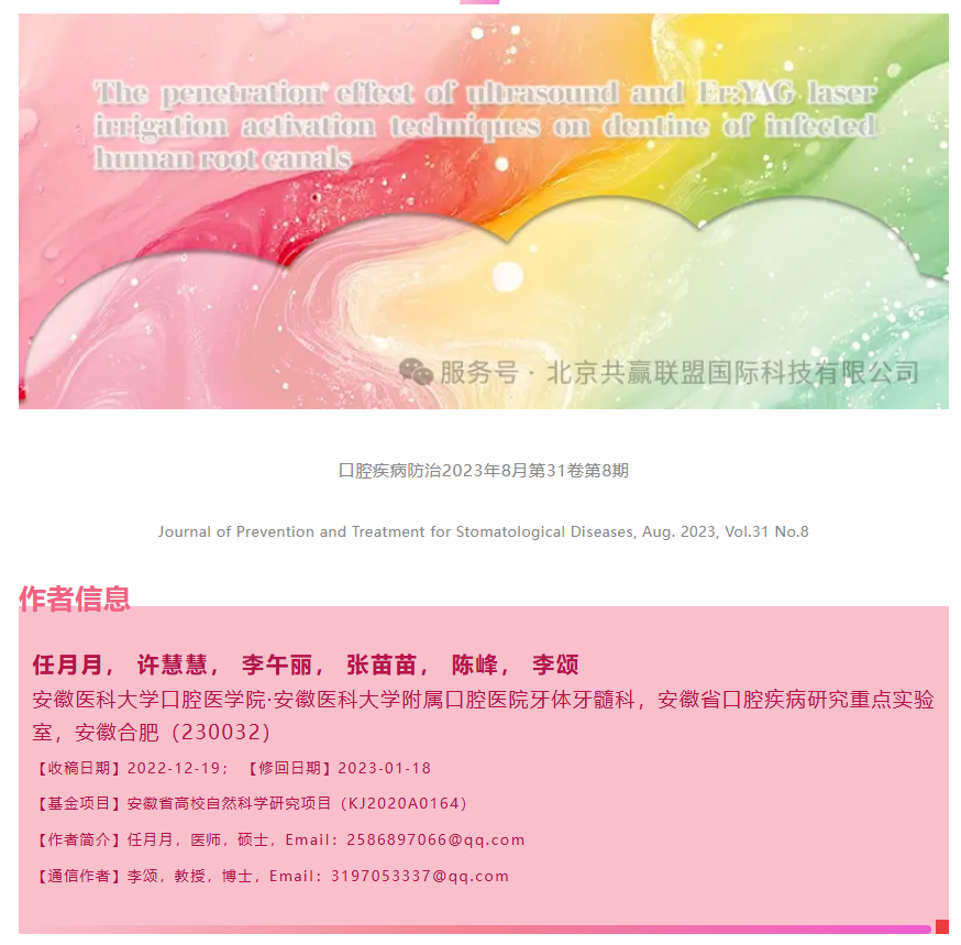 感染根管的牙本质渗透性弱于清洁根管;Er:YAG激光动力冲洗活化技术可以显著改善次氯酸钠溶液对感染牙本质的渗透效果;推荐将Er:YAG激光活化冲洗技术用于感染根管的治疗。