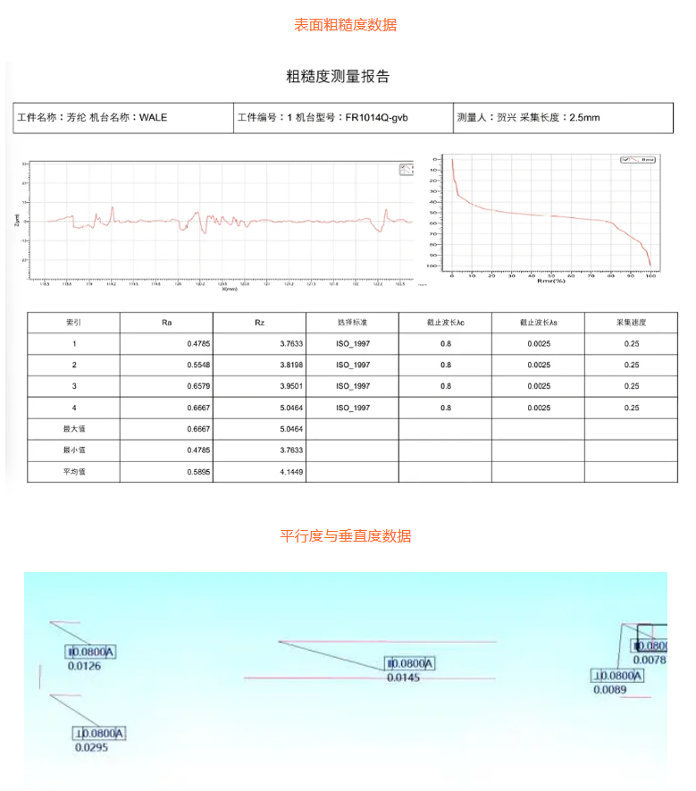 经实测验证,该方案加工的芳纶复合材料样件核心精度指标远超行业基准,也超过行业高精度内控指标。表面粗糙度平均值低至0.5895μm,平行度误差≤0.0145mm,垂直度误差≤0.0089mm,均满足航空航天级精密加工要求。