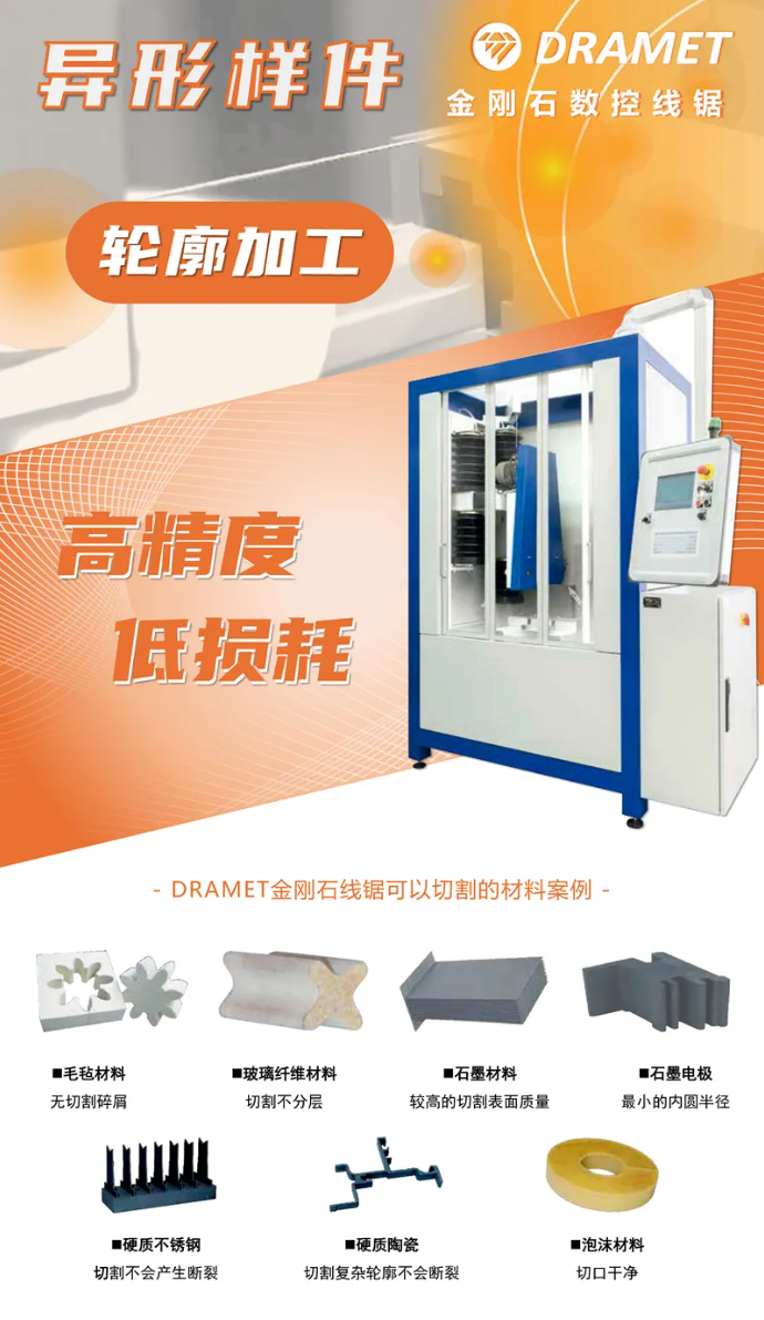 ISEL工艺虽在芳纶复合材料加工中实现了一定优化,但仍不具备全品类芳纶复合材料的适配性。实验室已配套DRAMET线锯,针对芳纶材料高强度、易起毛的特性打造核心加工优势,可适配复杂异形件与窄缝加工场景,操作灵活性强,且材料损耗低、利用率高,能兼容多种厚度规格的芳纶复合板材。